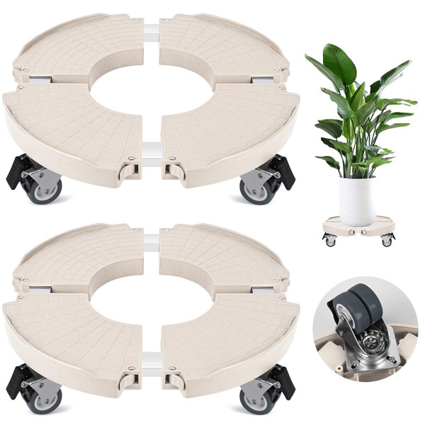 ToLanbbt 2 Pack Plant Caddy Stands with 360° Wheels Adjustable 15-22 in Rolling Stands Heavy Duty Large Plant Carts Dolly with Casters 440lbs Capacity for Large Planter, Garden Pot, Flower Pot, Beige