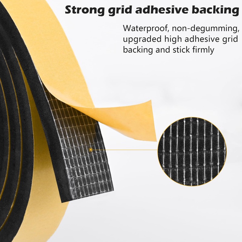 - Strong Adhesive Foam Tape: The weather strip uses upgraded strong grid adhesive backing, Waterproof, non-degumming, upgraded high adhesive grid backing and stick firmly, more than qualified doors and windows insulation tape. Please note to clean and dry the surface before applying for better performance