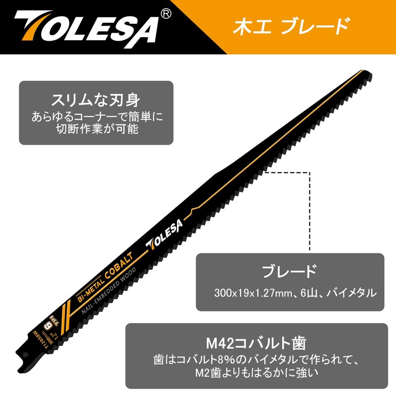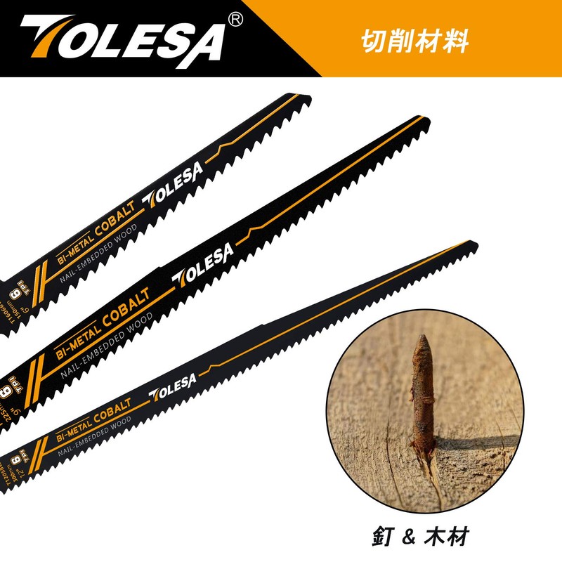 - (Cobalt Included) The TOLESA Reciprocating Saw Blade uses a bimetal saw tooth that contains 8% cobalt, which increases the lifespan of cutting work compared to ordinary bimetal blades