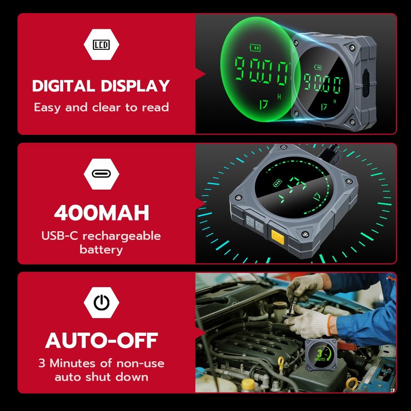 • Strong 4-sided magnetic base and secure hold: thanks to the strong magnets on all four sides, this protractor digitally sticks firmly to metal surfaces, pipes and steel constructions. The four-sided grooves provide extra grip making it ideal for hands-free construction and woodworking work. The built-in rechargeable 400mAh lithium battery ensures reliable power supply in daily use.