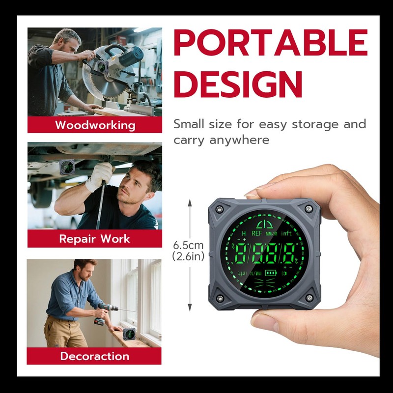 - Strong 4-sided magnetic base and secure hold: thanks to the strong magnets on all four sides, this protractor digitally sticks firmly to metal surfaces, pipes and steel constructions. The four-sided grooves provide extra grip making it ideal for hands-free construction and woodworking work. The built-in rechargeable 400mAh lithium battery ensures reliable power supply in daily use.