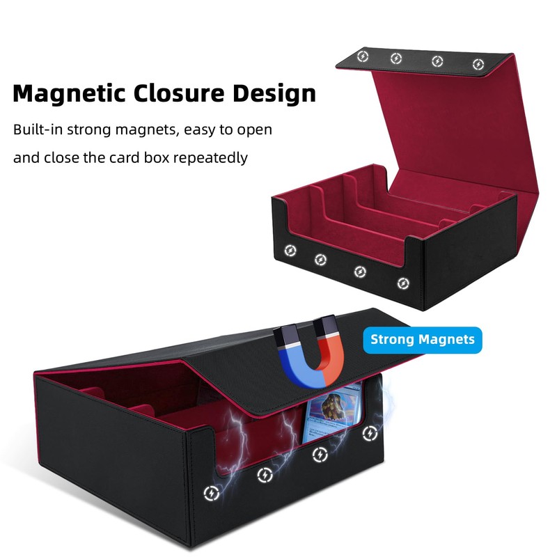 Tolesum Trading Card Storage Box, Card Deck Box for MTG, Gathering Card Box for 1800+ Cards with Dividers, PU Leather Magnetic Trading Cards, Compatible Magic Commander TCG Cards, Black and Red