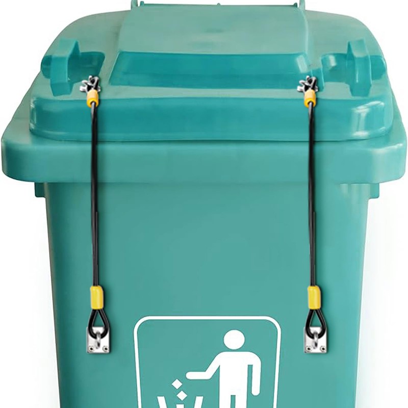 TOLIDA 4 Packs Universal Trash Can Lid Lock - Outdoor Trash Can Lid Metal Locks Kit, Rubber Coated Braided Wire Rope Dustbins Lid Lock Straps from Animals Rummaging, Wind and Spilling