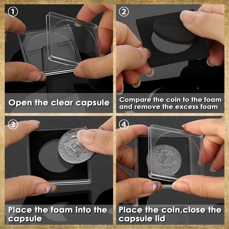 - Easy to Use -- Open the clear capsule and take out the foam, then compare the coin to the foam and remove the excess foam, finally place the coin with the suitable foam into the capsule and close it. It is very easy to use