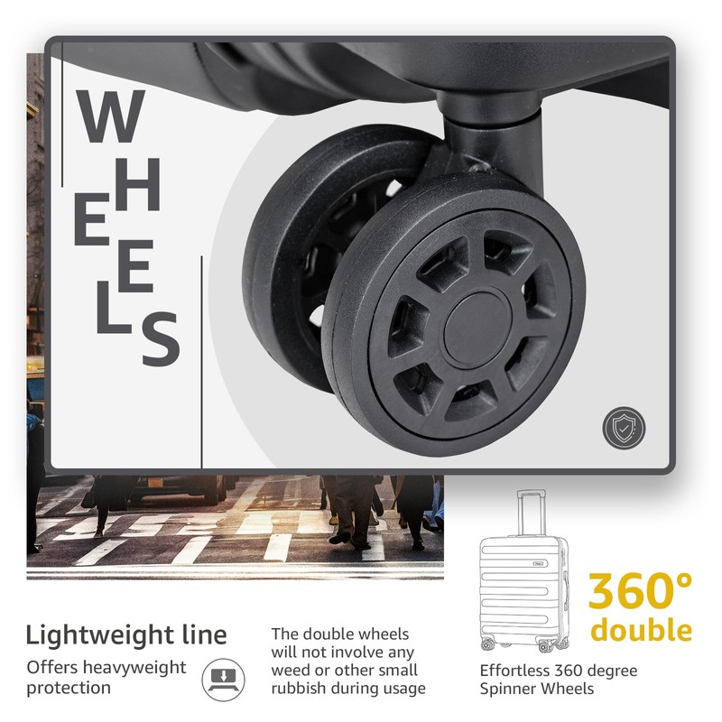 - 【360°DOUBLE SPINNER WHEELS】Four multi-directional double spinner wheels benefit from new soft TPE, ensuring smooth 360°rotation. The double wheels will not involve any weed or other small rubbish during usage as for its advanced design.