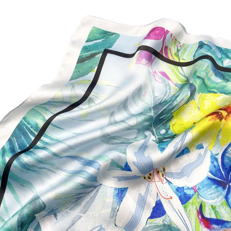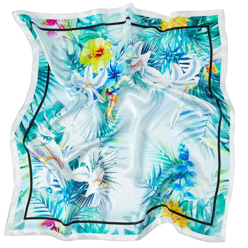Tolzorai - Bufanda cuadrada de seda de morera 100 % pura, diseño de satén para mujer, pañuelo de moda de 21 x 21 pulgadas, Blue2, 53*53CM