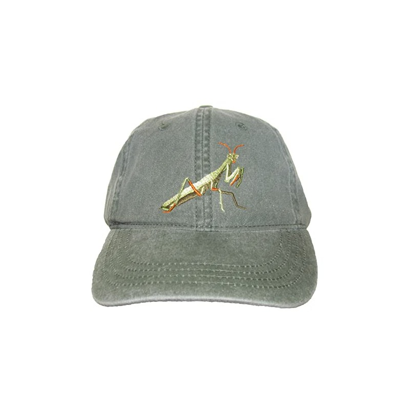 - Colorful embroidered design of a Praying Mantis on a new, high quality, 100% preshrunk cotton Khaki Green cap.