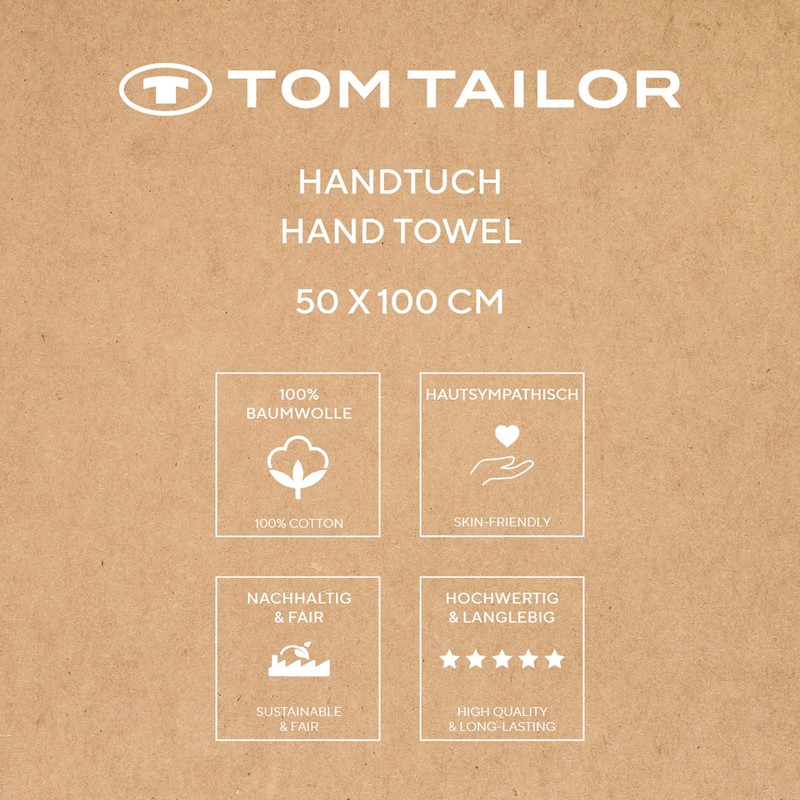 - Box contents: 1x Tom Tailor hand towel, set of 2, colour bath towel, colour: turquoise (Fresh Sage), size: 50 x 100 cm, material: 100% cotton, item no. 00016004510