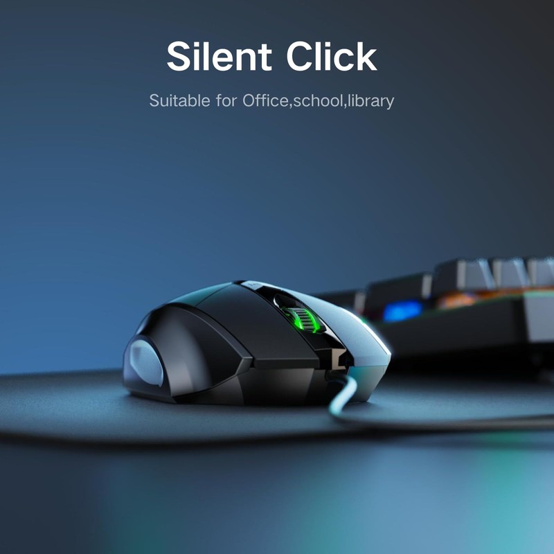 • Silent Design: Equipped with silent left and right buttons, the wired mouse ensures a noise-free environment. This means you can gently click the buttons whenever needed without creating any disruptive sounds. Whether you're in the office, library, or at home, enjoy a quiet and peaceful environment.