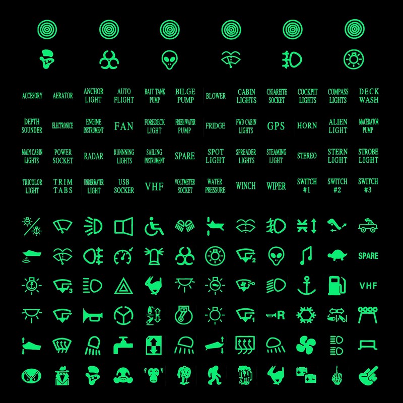 TOMALL 132 Pieces Center Console Light Stickers, Car Night Safety Glow in the Dark Switch Label Accessories for Boat Trailer, Car Headlight Control, GPS