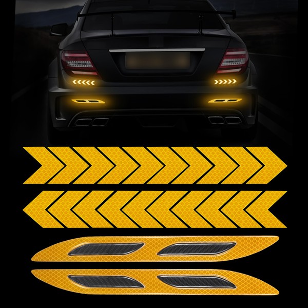 TOMALL 22Pcs Strong Reflective Arrow Decals for Car Trunk Fender Bumper High-Intensity Night Visibility Diamond Grade Reflective Stickers Safety Warning Waterproof for Vehicles SUV Motorcycle(Orange)