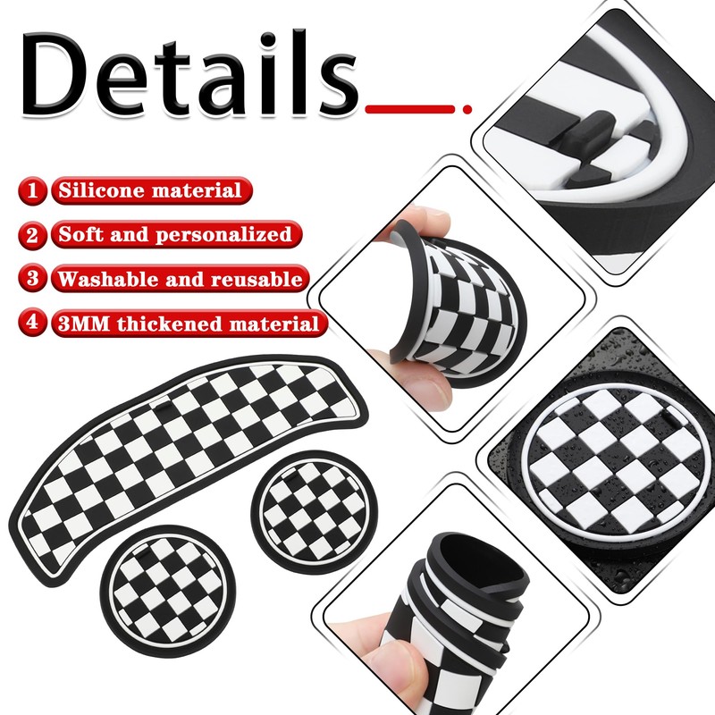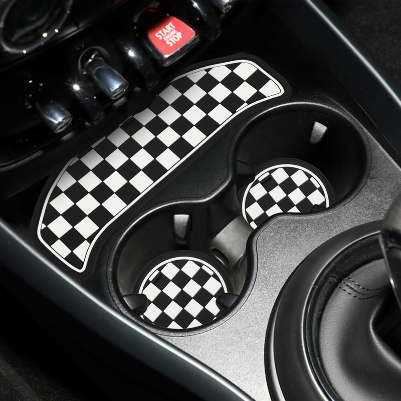 TOMALL Cup Coaster Compatible with Mini Cooper F54 Clubman 2014-2021 Silicone Cup Holder Coaster Center Console Storage Box Car Coasters for Cup Holders Car Coaster Mat Pad Accessories (Checkered)