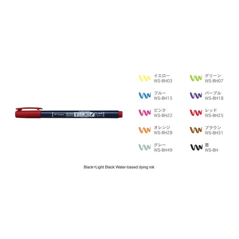 Tombow Fudenosuke brush pens give artists and calligraphers the ability to draw sweeping strokes with precision and ease. This makes them ideal for creating expressive lines and elegant lettering, as well as for writing Chinese and Japanese characters. Their colorful, water-resistant ink is perfect for creating beautiful artwork with watercolors or water-based markers. This hard tip pen has a flexible but firm tip that allows for controlled line variation.