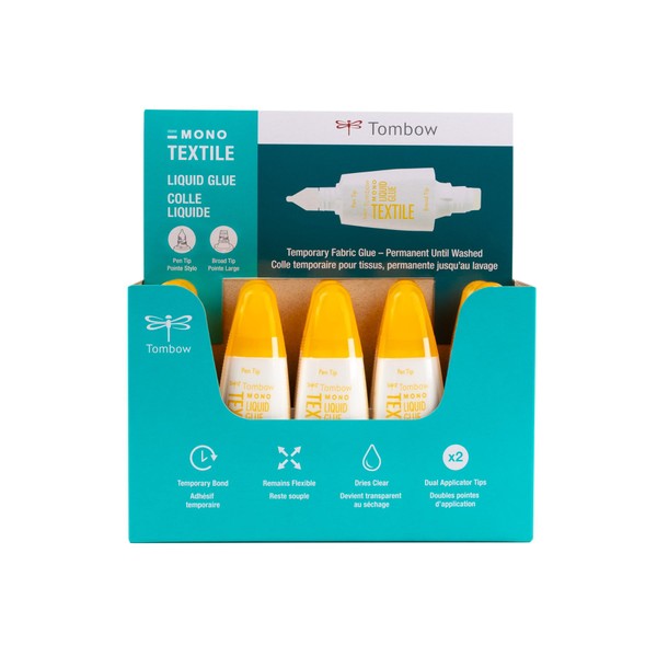 • MONO Textile Liquid Glue is a specialized adhesive for fabric crafting, providing a strong yet flexible bond that holds fabric securely in place while maintaining pliability and movement.