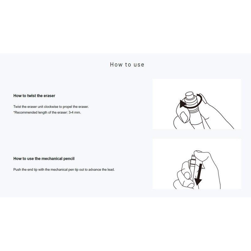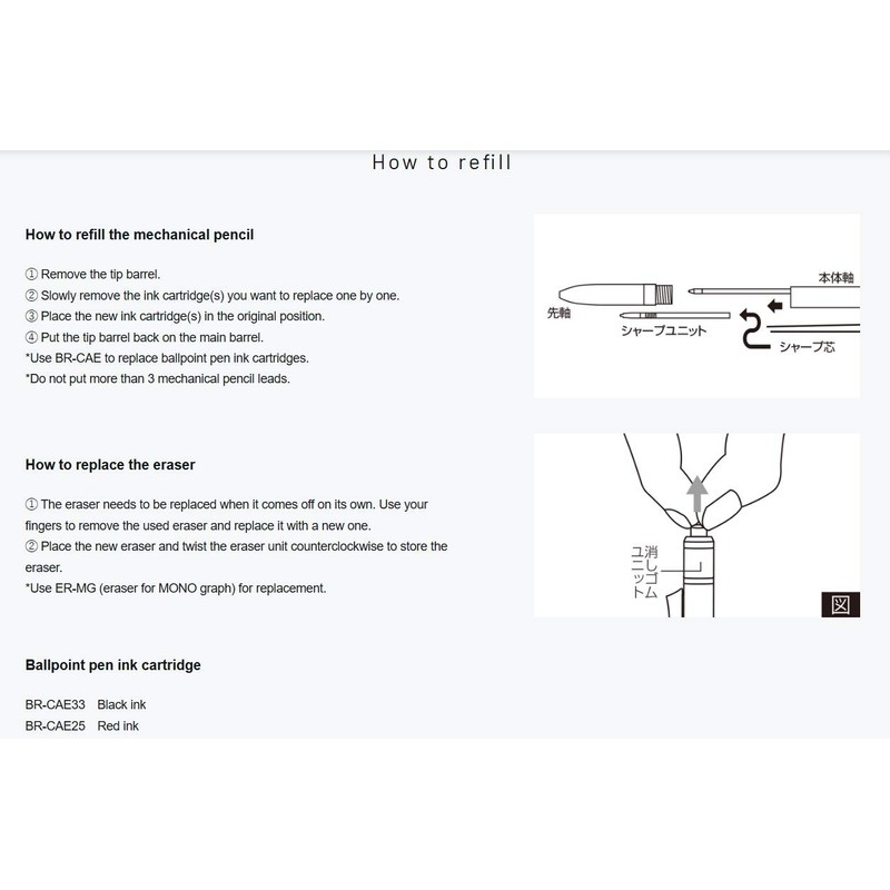 • Eraser: Mono eraser common with monograph mechanical pens