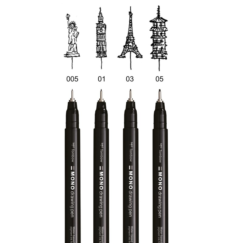 Tombow WS-EFL-H-F-4P Mono Drawing Pen Fine Set Pigment Ink Water and Light Resistant for Illustrating and Drawing Black Set of 4