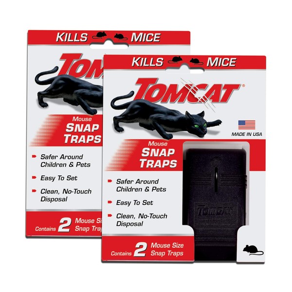 Tomcat Mouse Snap Traps - Mouse Killer, Safer Around Children and Pets Than Conventional Wooden Traps, Comes with 2 Per Box, 2-Pack