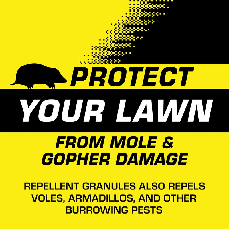 • Tomcat Mole & Gopher Repellent Granules effectively repel moles, gophers, voles, armadillos, and other burrowing pests