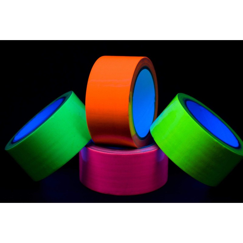 TOMENGBEIAABBCC Aeiniweraabbcc PDTXCLS Neon Tape Set 4X 1 Rolle 50mm x 10m (0,62€/m) grün, gelb, pink, orange Klebeband Uv aktiv Schwarzlicht Neontape