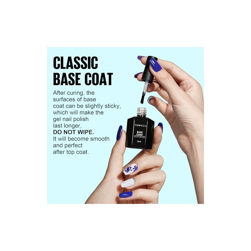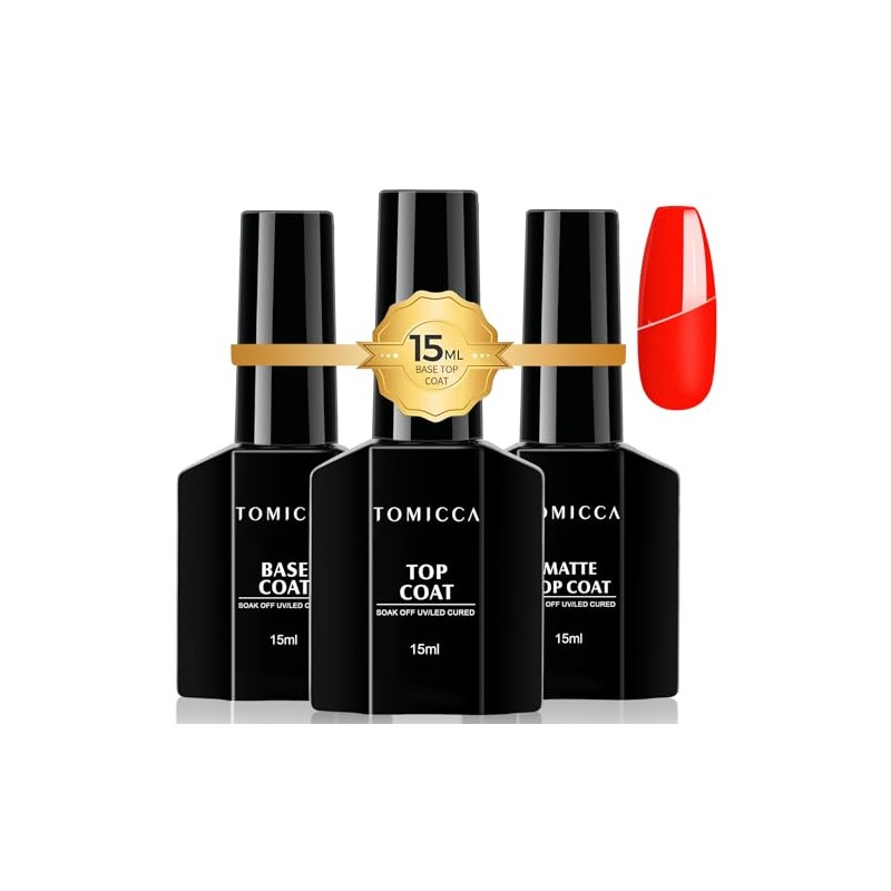 TOMICCA Base und Top Coat Gel UV Nagellack Set, 3 x 15ml Base Coat Top Coat Gel UV, Enthält Matte Top Coat, No Wipe, für alle UV Gel Nagellacke