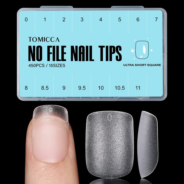 TOMICCA Extra Short Square Nail Tips, 15 Sizes Soft Double-sided Matte Fake Nails for Extensions, 450Pcs Acrylic Pre Shaped Gel Nail Tips for Home DIY Art Women Girls