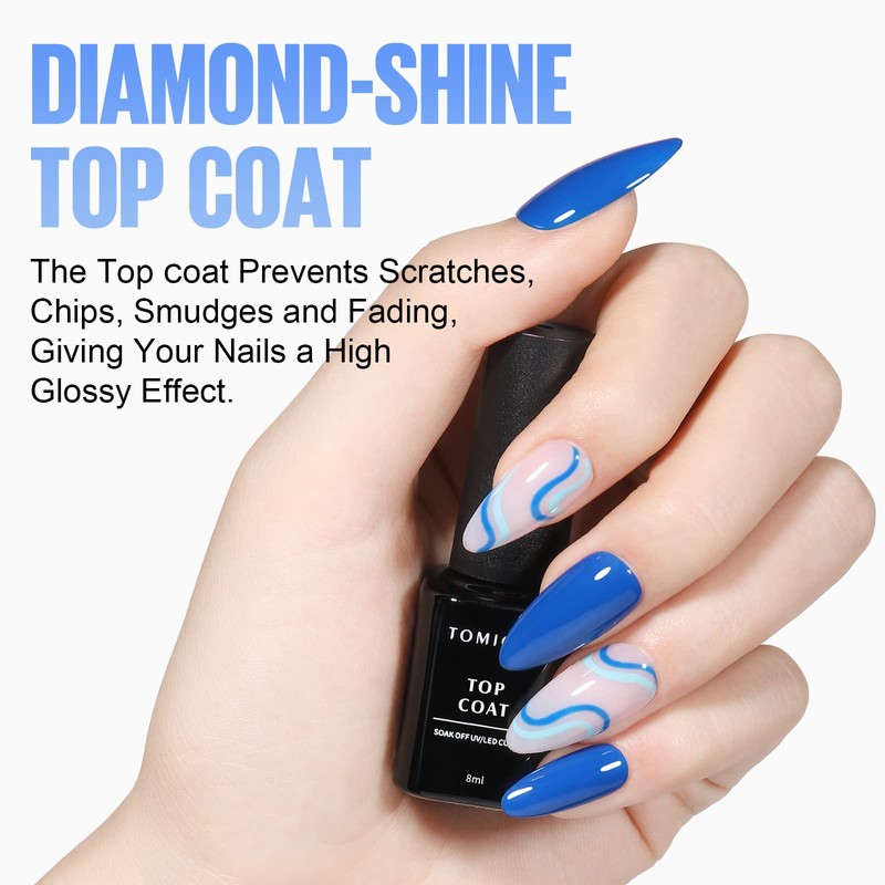- 【TOMICCA No Wipe Top Coat】 15ml UPGRADED Formel Top Coat Gel Nagellack, ANTI-SWEAGE, WEAR RESISTANT, FAST DRY, LONG LASTING und SHINE FINISH. Es ist normal, dass ein Base Coat und Farbgel nach dem Aushärten ein wenig klebrig bleibt. Machen Sie sich darüber keine Sorgen. Es würde eine bessere Haftung zwischen Nägeln und Gelschichten haben. Der Decklack würde es versiegeln.