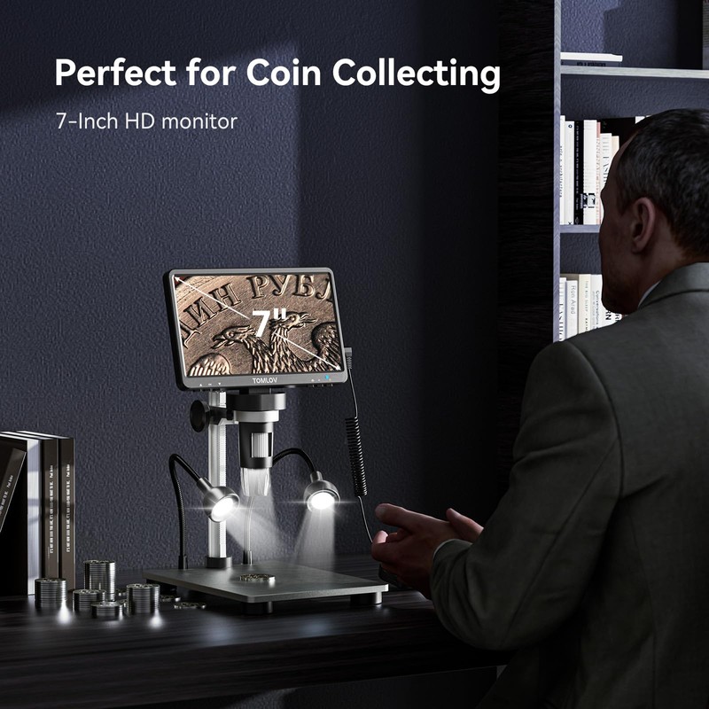 TOMLOV DM9 7" Digital Microscope: 1080P 1200X Coin Microscope Magnifier, 12MP...