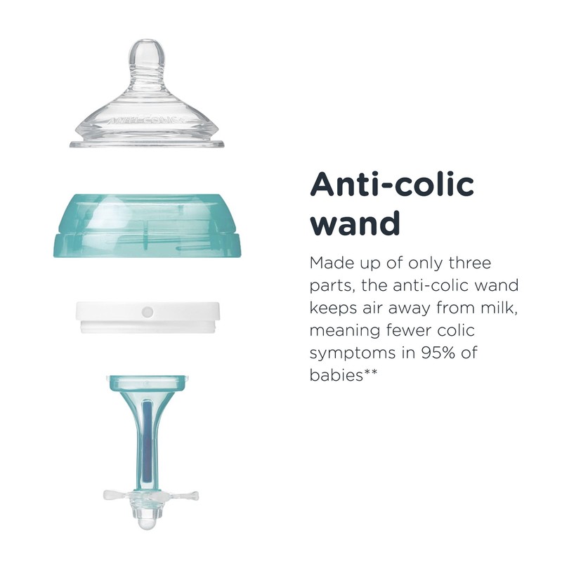 - Baby bottle designed to reduce colic symptoms for less gas, spit up and discomfort