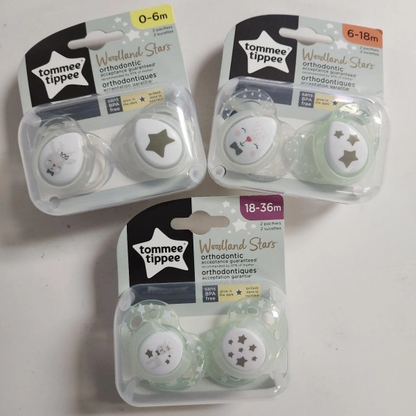 Tommee Tippee Baby Pacifiers 2 Each Of 0-6, 6-18, 18-36 Glow In Dark Boy Girl