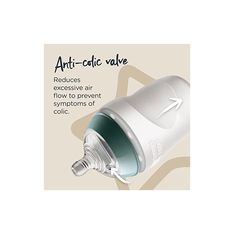 Our most breast-like bottle: Made from soft-touch, skin-like silicone, this squeezable baby bottle feels just like mom and provides baby with the familiar comfort and warmth of moms breast Breast-like: Our soft silicone, breast-like nipple feels closer to skin and flexes like mom for a comfortable feed and supports in the transition from breastfeeding to bottle feeding Anti-colic: Sensitive Closer to Nature nipple with anti-colic valve reduces excessive air flow, so little ones ingest more milk and less air, preventing symptoms of colic Guaranteed no leaks: Easy to assemble and guaranteed no leaks when feeding your baby. The included lid and travel disc prevent spills or leaks when on the go Mom recommended: 95% of moms would recommend Tommee Tippee Closer to Nature bottles to others