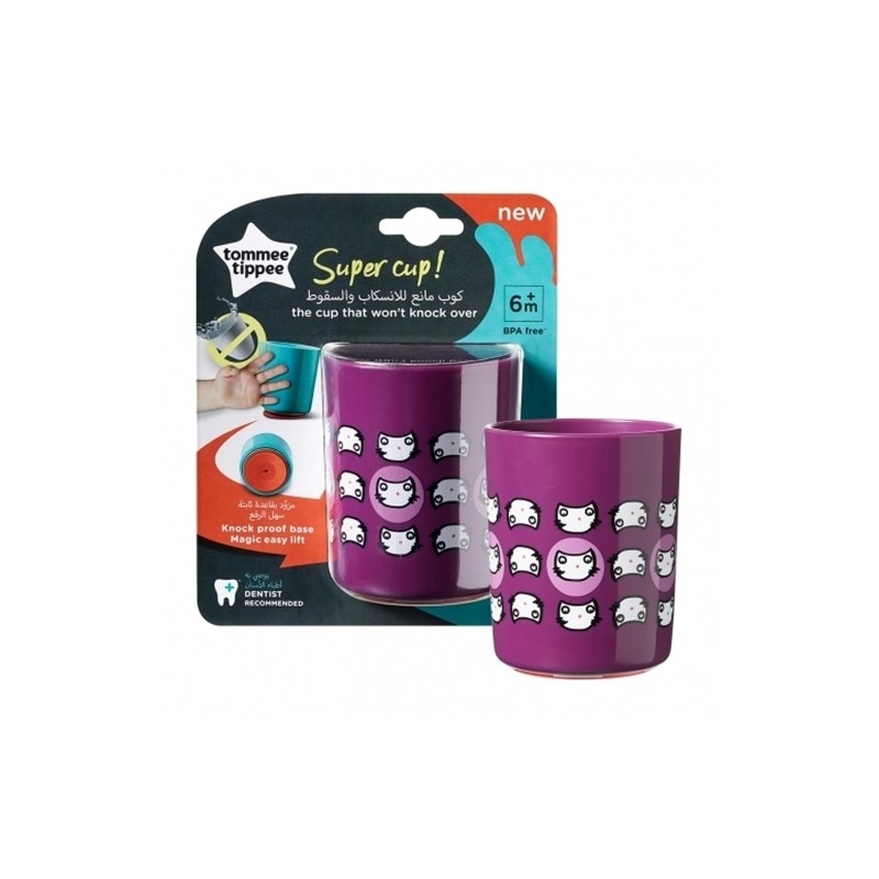 The world’s first toddler-proof cup. the no-knock cup is the open-top cup that won’t knock over. It has clever grip technology, which means the eye-catching cup resists knocks, bumps and bashes from little hands. The open top cup that won’t knock over. The Tommee Tippee Super Cup is the world’s first toddler proof cup… It grips instantly to smooth, flat, solid surfaces, stopping little hands from tipping it over.