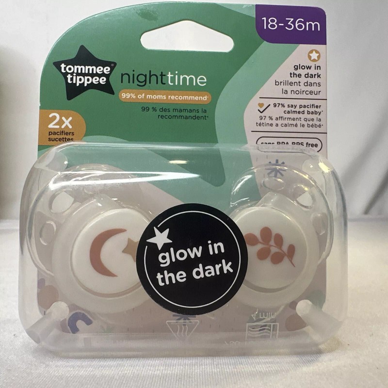 Introducing the Tinker Tippee Night Time Pacifier 2 PK, perfect for your little one's bedtime routine. This pacifier is designed with a unique glow in the dark feature that will make it easier to locate in the dark. Made by Tommee Tippee, a trusted brand in baby products, this pacifier is designed for babies aged 18-36 months.