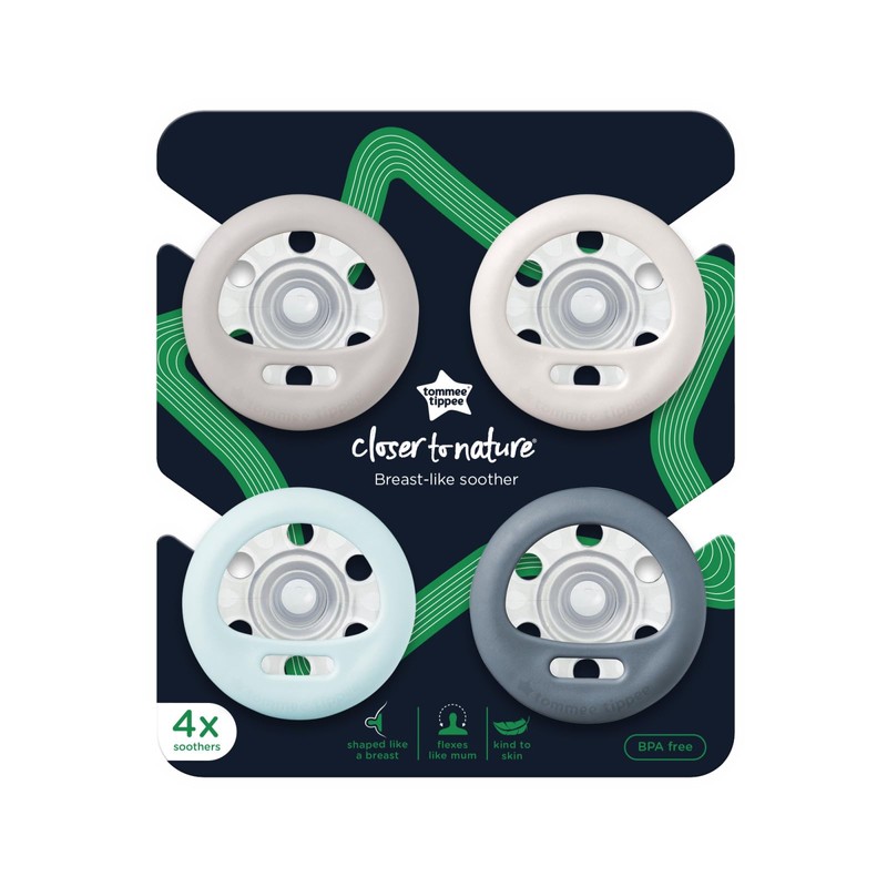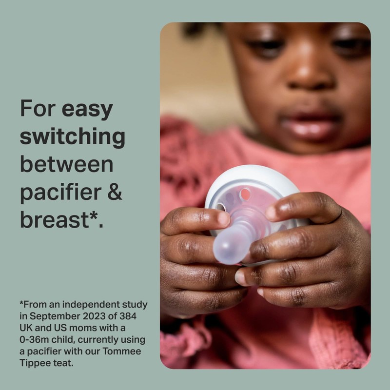 Makes switching from comforting to breast or bottle feeding simple. Designed with a breast-like shape and feel for added reassurance. ? Shaped like a nipple (and our bottle nipple) for a natural latch ? Symmetrical design (so it's always the right way up) ? Air holes so their skin can breathe ? Available in 2 age stages: 0-6 and 6-18 months ? BPA free