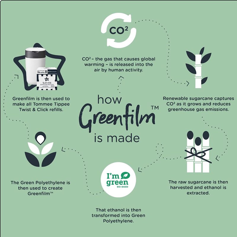 - Now more eco-friendly: Twist & Click nappy bin refill chassis are made from 100% recycled and fully recyclable plastic