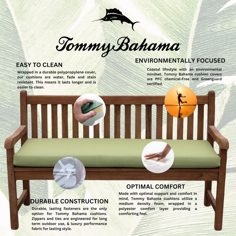 - EASY CLEAN: Easy to clean with a cloth, mild soap, and warm water. For harder to clean messes, your Tommy Bahama cushion comes with a removable cover. The cover is bleach cleanable and will keep your patio looking great for many seasons!