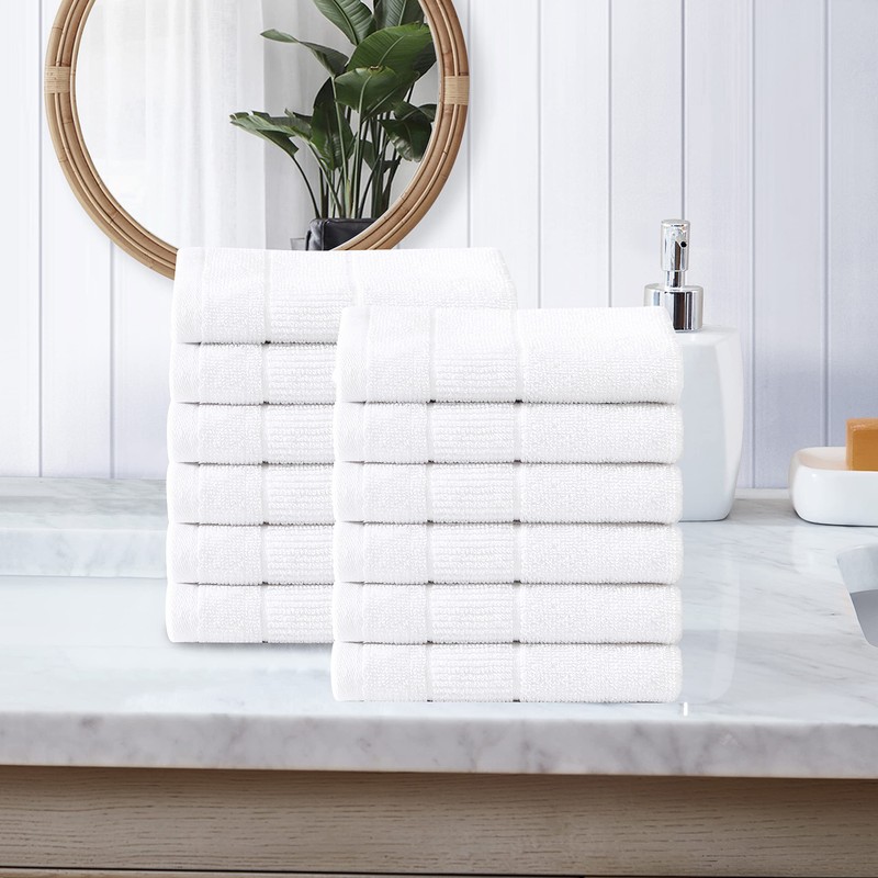 Tommy Bahama- Washcloths, Absorbent & Fade Resistant Cotton Towel Set, Fashionable Bathroom Decor (Island Retreat White, 12 Piece)