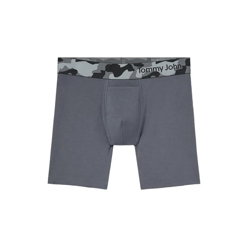 Tommy John Men’s Trunk 6" Underwear - Cool Cotton Boxers with Supportive Contour Pouch - Cool, Dry Pima Cotton Blend, Iron Grey/Grey Camo, Medium