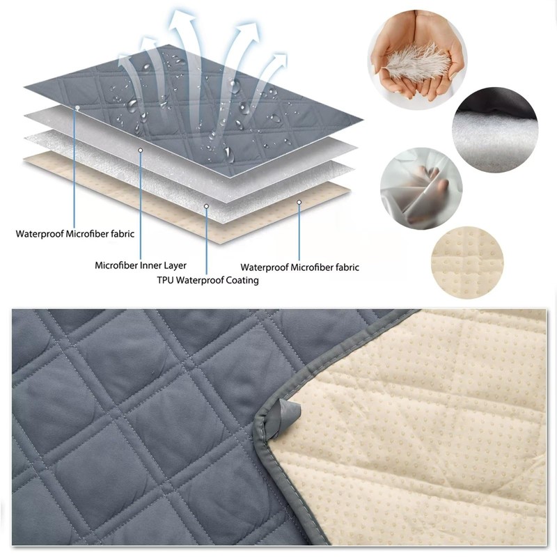 - Waterproof & Stain Resistaint: This quilted sofa cover is designed with 2 layers completely 100-percent waterproof at the top and bottom of the cover. This ensures total protection from accidental liquid spills, stains, hair and fur