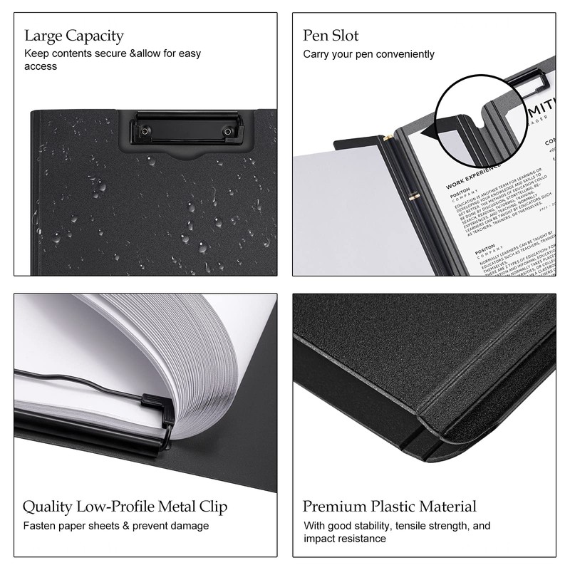 - ✅【Protect Files】This durable clipboard is great for keeping your documents and letters organized and protected from dust and moisture. The cover of the clipboard is waterproof to prevent the inclusions from being destroyed by water. Easy to wipe clean with a damp cloth. The rounded corners are long-lasting and don’t hurt your hands.