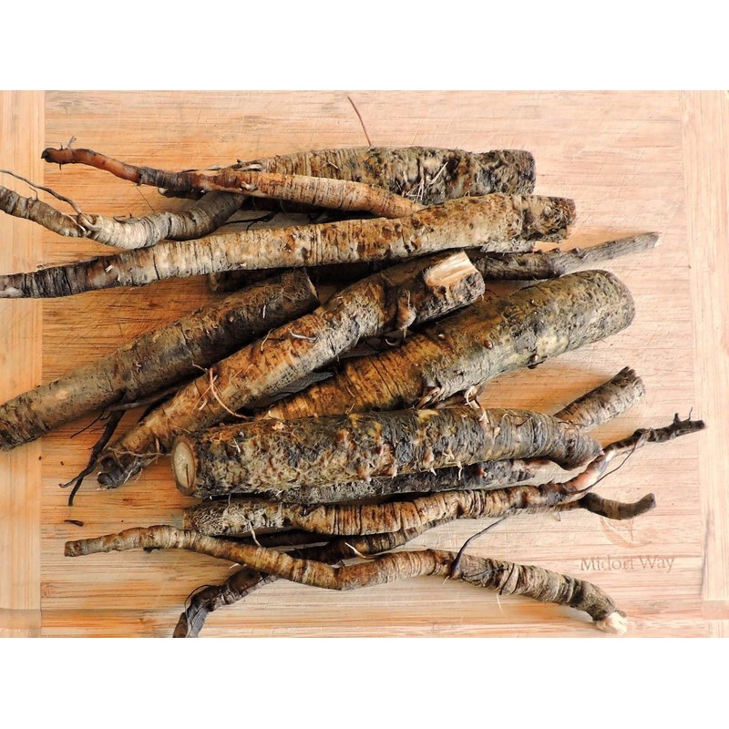 Burdock is a large, brown root cultivated for its tender, crunchy white flesh which has a sweet, mild, earthy flavor reminiscent of artichokes. This highly nutritious root is a favorite in East Asia, and an essential part of the Zen Buddhist diet. Add to soups and stir-fries for richer flavor, or make traditional dishes like Chinese Burdock Bone Soup, Kimpira Gobo and Ueong Jorim. This first-year winter-hardy variety flowers ornamental purple burs from July to October and provides essential pollen and nectar for honeybees around August. Burdock plants can grow up to 3 feet tall.