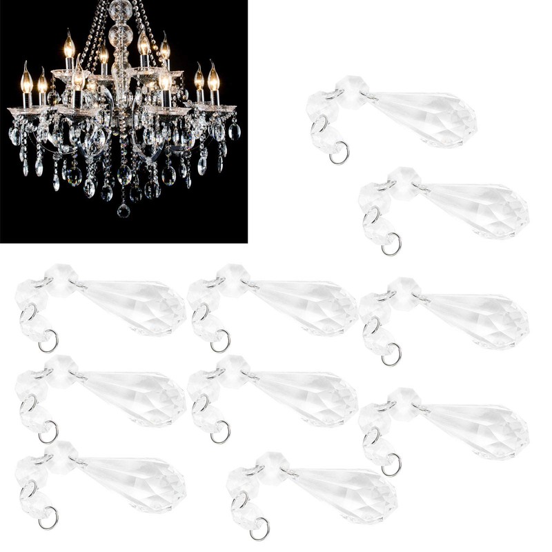 Tomotato Pack of 10 Chandelier Crystals, 10.5 cm Teardrop Shape Transparent Acrylic Crystal Chandelier Prism Replacement Pendant Parts for Home Wedding Party Decoration