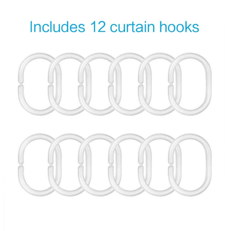 - MATERIAL: 100% polyester fabric, water proof. Not see-through, protect your privacy always. Includes 12 plastic curtain hooks.