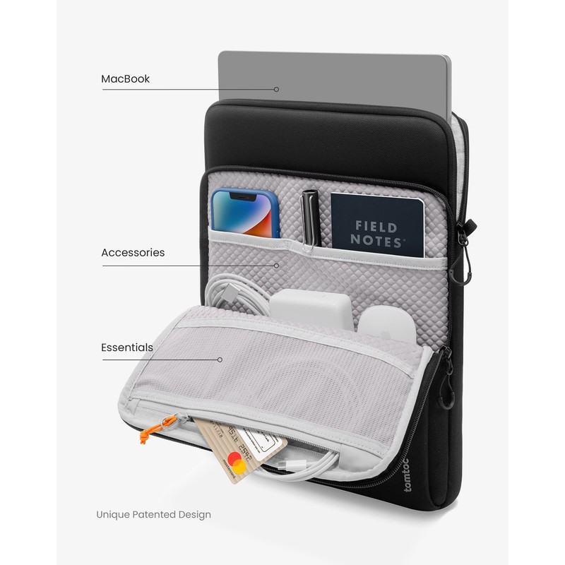 - Military-grade Protection: To combat the toughest situations - from falls to shocks to vibrations, tomtoc proposed the concept of 360 protection and designed the laptop sleeve with CornerArmor Technology, high resilience edges, and dual-density foam padding. It passed the Military-Standard-Drop-Test while also maintaining a sleek design