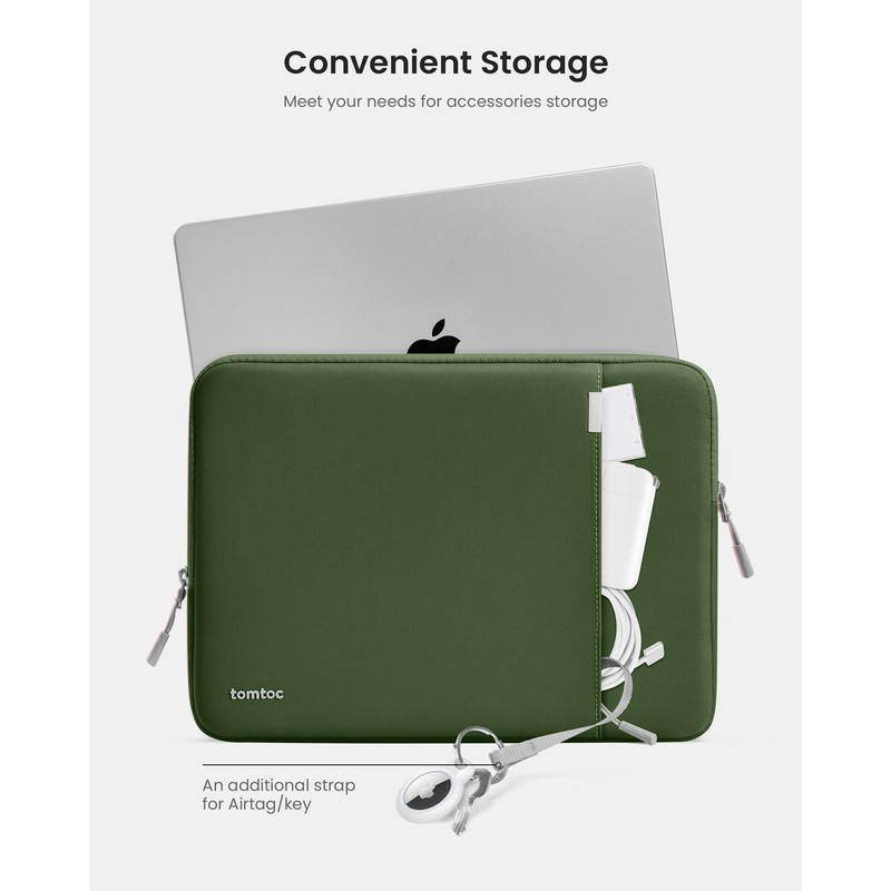 - Military-Grade Protection: To combat the toughest situations: from falls to shocks to vibrations, tomtoc proposed the concept of 360 protection and designed the laptop sleeve with CornerArmor Technology, high resilience edges, and high-density soft padding. It passed the Military-Standard-Drop-Test while also maintaining a sleek design