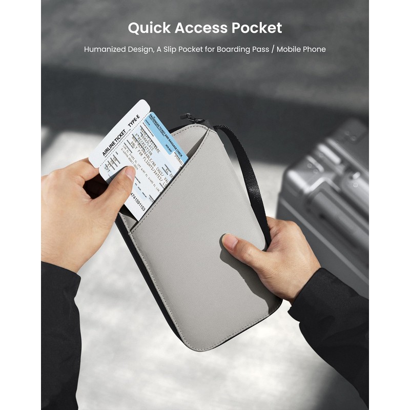 - Thoughtful Outside Storage and Wrist Strap: A spacious back pocket on the wallet for boarding pass or smartphone or any other important documents often use during travel, offers easy access to your essentials; Compact and portable for traveling and easy to carry w/ a wrist strap