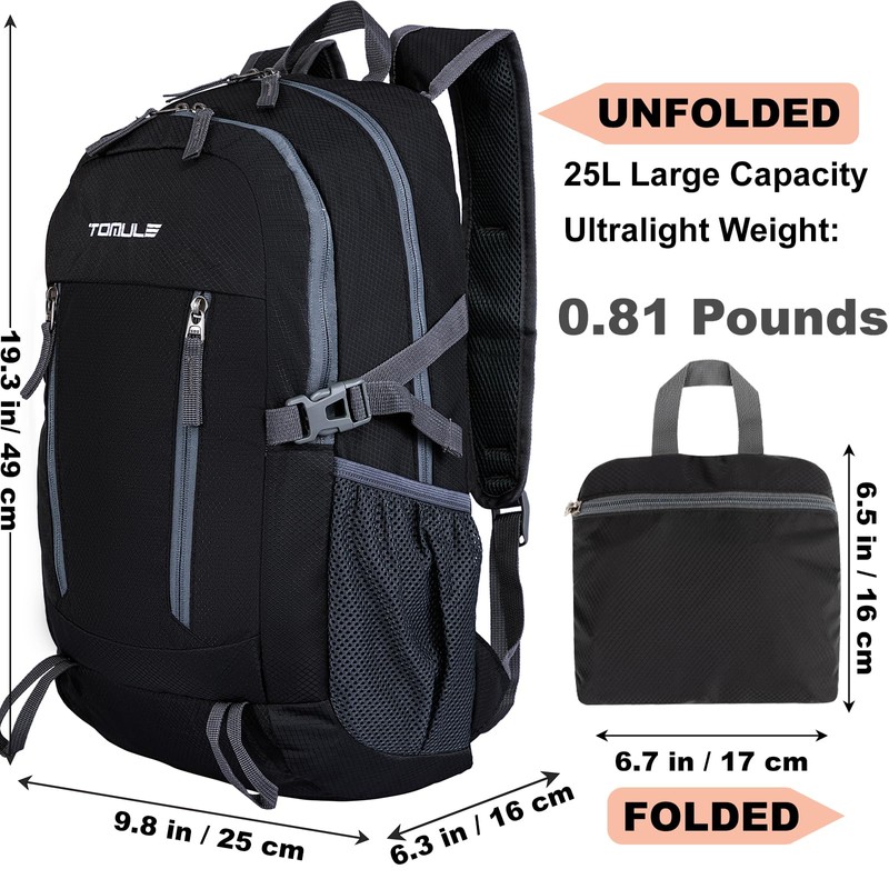 SPECIFICATIONS OF TOMULE PACKABLE BACKPACK: