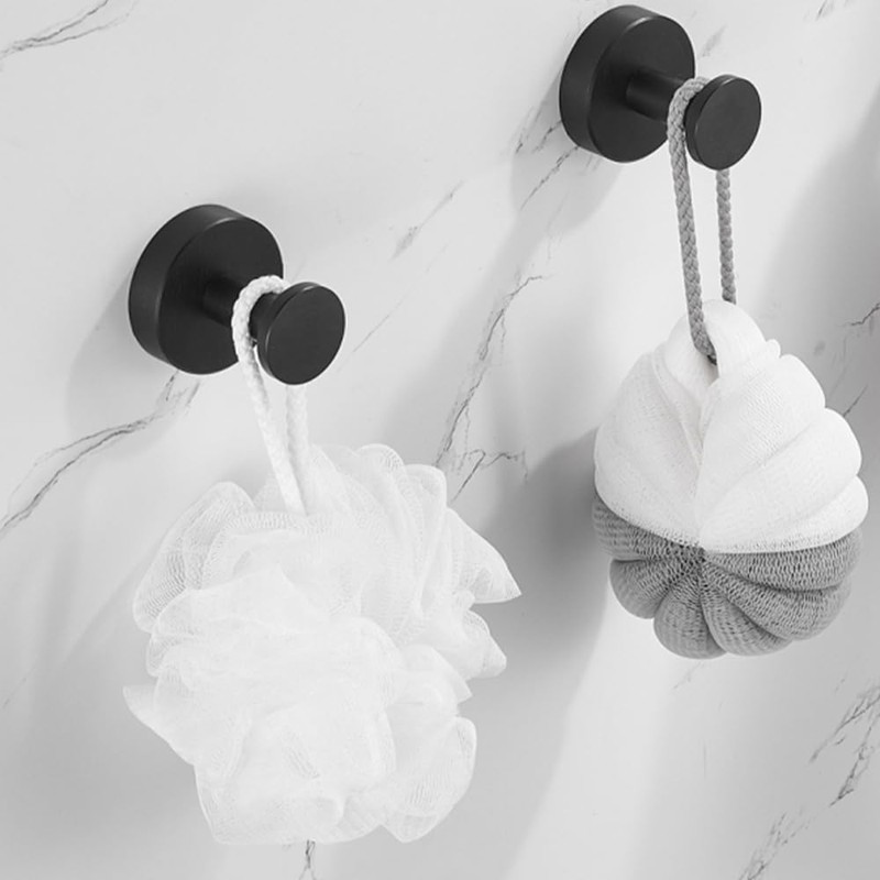 TOMVAES 4 PCS Stainless Steel Suction Cup Hooks for Bathroom & Kitchen, Modern Matte Black Wall Mounted Towel Hooks, No Drill, Holds Up to 3kg