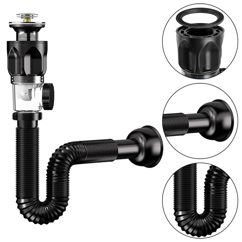 - 🌟🌟**Comprehensive Set**: This kit includes 2 waterproof straps and 1 floor drain, providing everything you need for a complete sink drainage solution. The Sink Drain Pipe Trap integrates seamlessly for optimal functionality.
