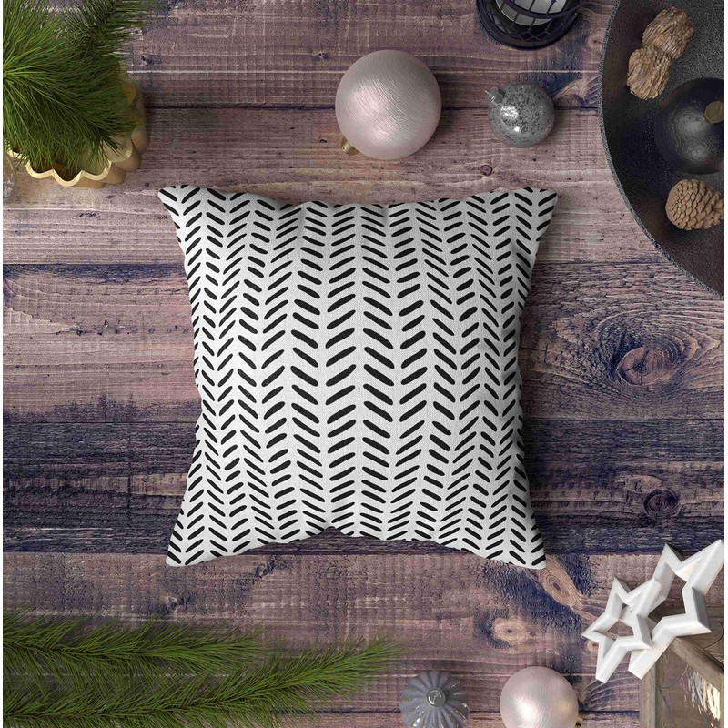 TOMWISH Decor Pillow Covers,TOMKEY 2 Packs Hidden Zippered 18X18Inch Black on White Sketch Herringbone Pattern Decor Throw Cotton Pillow Case Cushion Cover for Home Decor