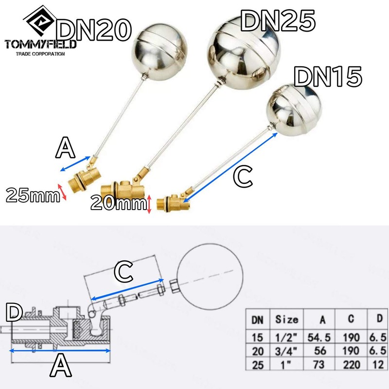 DN15 is designed with 1/2" screw, DN20 with 3/4" screw, which can be connected to many valves and bunks. Can be used for water boiler machines, water padding, water towers, washrooms, tanks, aquariums, etc.